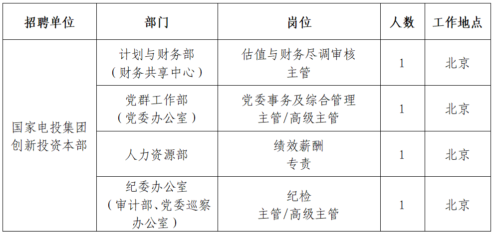 根據(jù)工作需要,現(xiàn)面向國(guó)家電投集團(tuán)系統(tǒng)內(nèi)開(kāi)展相關(guān)專業(yè)人才招聘工作,具體情況如下: