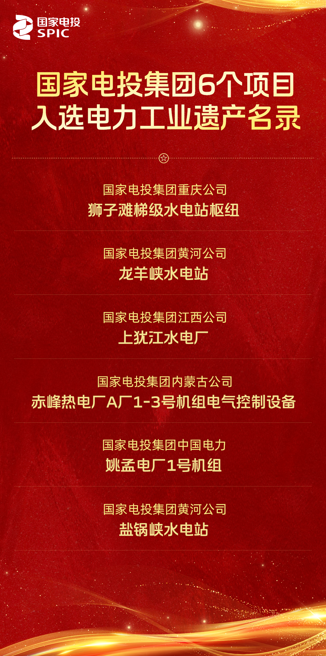 6月16日,中國電力企業(yè)聯(lián)合會(huì)公布“賡續(xù)工業(yè)薪火 電亮精神之路”電力工業(yè)遺產(chǎn)名錄,國家電投集團(tuán)重慶公司獅子灘梯級(jí)水電站樞紐、黃河公司龍羊峽水電站、江西公司上猶江水電廠、內(nèi)蒙古公司赤峰熱電廠A廠1-3號(hào)機(jī)組電氣控制設(shè)備、中國電力姚孟電廠1號(hào)機(jī)組和黃河公司鹽鍋峽水電站6個(gè)項(xiàng)目入選。