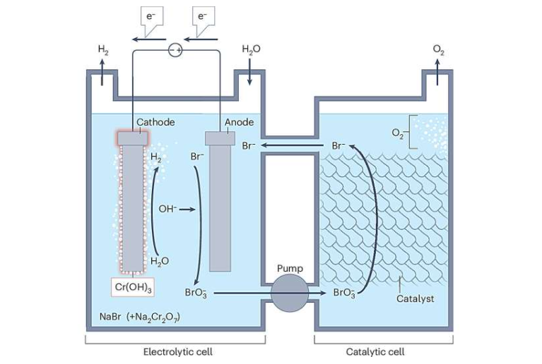 溴化物/溴酸鹽解耦水電解過(guò)程。圖片來(lái)源:《自然評(píng)論:清潔技術(shù)》(2025)