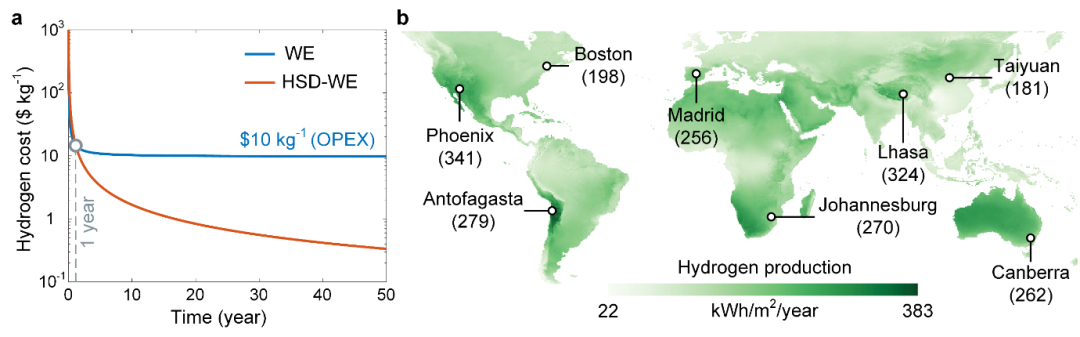 技術(shù)經(jīng)濟(jì)分析表明,該系統(tǒng)的優(yōu)勢(shì)顯著:運(yùn)行3年后綠氫生產(chǎn)成本可達(dá)到每公斤5美元,運(yùn)行15年后成本可進(jìn)一步達(dá)到每公斤1美元。該技術(shù)展示出商業(yè)化潛力,為未來可持續(xù)的綠氫規(guī);a(chǎn)提供了一種經(jīng)濟(jì)可行的路徑技術(shù)。