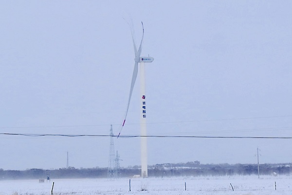 ▲吉電股份華北區(qū)域公司張北縣“互聯(lián)網+智慧能源”示范項目的風機如“鋼鐵衛(wèi)士”一般傲然屹立在風雪中。