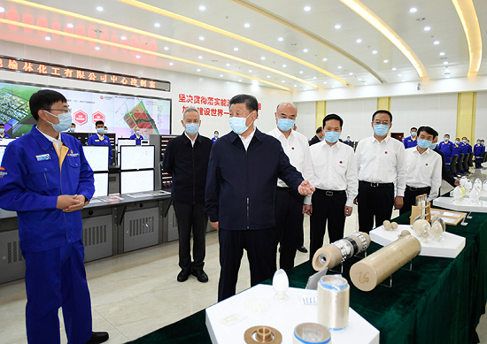 13日上午,習(xí)近平首先來到國家能源集團(tuán)榆林化工有限公司,了解循環(huán)經(jīng)濟煤炭綜合利用項目規(guī)劃建設(shè)運行情況。在中心控制室,習(xí)近平觀看項目產(chǎn)品展示,對企業(yè)堅持創(chuàng)新發(fā)展,堅持安全、穩(wěn)定、清潔運行的做法表示肯定。隨后,習(xí)近平到年產(chǎn)40萬噸乙二醇項目現(xiàn)場察看,詢問煤化工深度發(fā)展有關(guān)情況,同企業(yè)職工代表親切交流。他強調(diào),榆林是國家重要能源基地,為國家經(jīng)濟社會發(fā)展作出了重要貢獻(xiàn)。煤炭作為我國主體能源,要按照綠色低碳的發(fā)展方向,對標(biāo)實現(xiàn)碳達(dá)峰、碳中和目標(biāo)任務(wù),立足國情、控制總量、兜住底線,有序減量替代,推進(jìn)煤炭消費轉(zhuǎn)型升級。煤化工產(chǎn)業(yè)潛力巨大、大有前途,要提高煤炭作為化工原料的綜合利用效能,促進(jìn)煤化工產(chǎn)業(yè)高端化、多元化、低碳化發(fā)展,把加強科技創(chuàng)新作為最緊迫任務(wù),加快關(guān)鍵核心技術(shù)攻關(guān),積極發(fā)展煤基特種燃料、煤基生物可降解材料等。