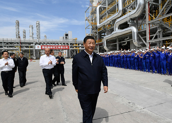 9月13日至14日,中共中央總書記、國家主席、中央軍委主席習(xí)近平在陜西省榆林市考察。這是13日上午,習(xí)近平在國家能源集團(tuán)榆林化工有限公司年產(chǎn)40萬噸乙二醇項目現(xiàn)場考察。新華社記者 李學(xué)仁 攝