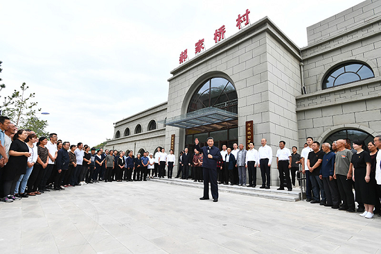 在村果蔬大棚基地,習(xí)近平仔細(xì)了解該村產(chǎn)業(yè)規(guī)劃發(fā)展情況,走進(jìn)大棚察看葡萄長勢。在村互助幸福院、村衛(wèi)生站,習(xí)近平同村里的老人、醫(yī)護(hù)人員等親切交流。他指出,來到郝家橋,我深受教育和啟發(fā)。山溝溝能走出致富路、過上好日子,靠的是政策好、人努力、天幫忙。這里能做到的,其他地方也應(yīng)該能做到。重要的是深入調(diào)查研究,摸準(zhǔn)情況、吃透問題、找到辦法、總結(jié)經(jīng)驗,持續(xù)發(fā)揮典型引領(lǐng)示范作用,建好黨支部、選好帶頭人,把基層黨組織戰(zhàn)斗堡壘作用充分發(fā)揮出來。