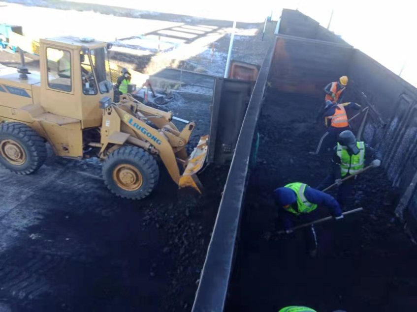 工作人員及時清理車廂殘煤確保裝車站定量裝車準確無誤